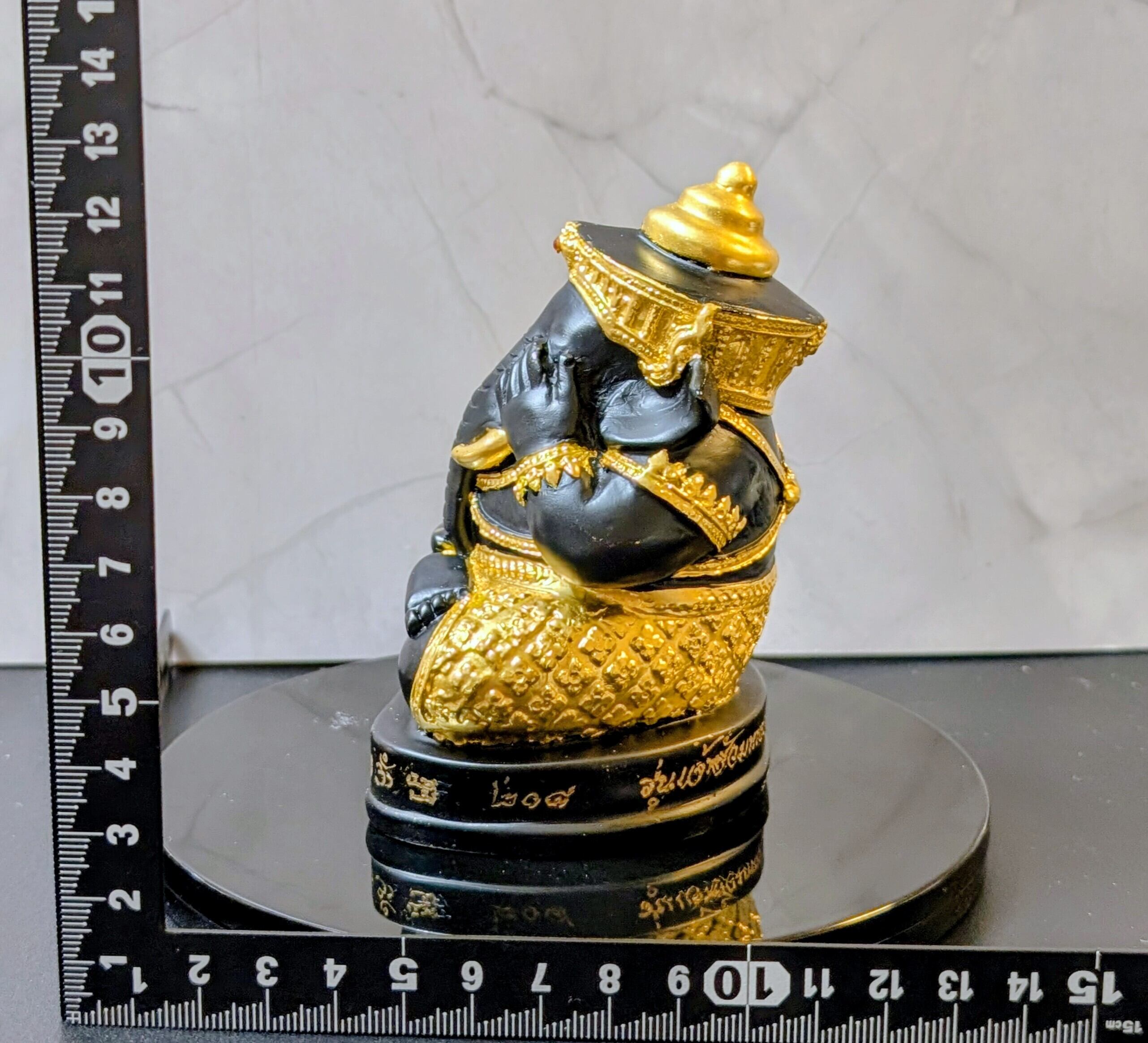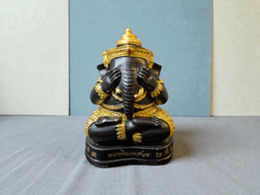 「プラピッカネート スワンピッターモンコンジャックルワン」は、タイにおいて信仰されている特別なガネーシャ像を指します。直訳すると「ガネーシャ神が宇宙の吉祥を閉じる」といった意味になりますが、これはガネーシャが宇宙のあらゆる幸福や繁栄、そして守護の力を一身に集め、それらを内なるものとして蓄えている状態を表していると考えられます。タイでは、このモデルは特に以下のような目的で信仰され、お守りや像として作られ、単なる像としてではなく、宇宙の根源的な力と繋がり、信仰者の願いを叶えるための媒体として非常に重要視されています。