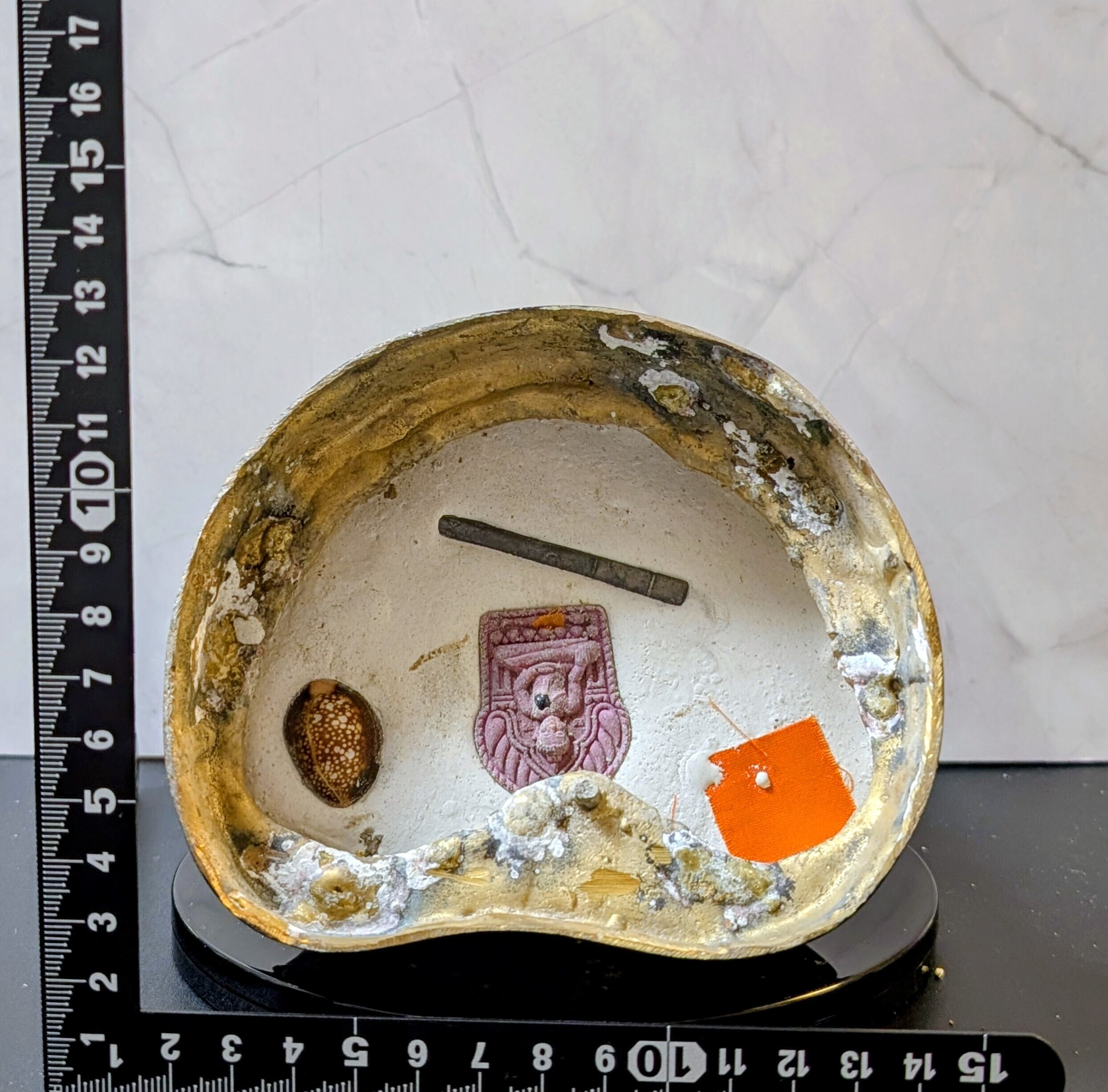 このガネーシャ像はサイズが手頃な大きさで、底面には袈裟の一部とクンペーン、ピアゲー(貝殻)、タクルットが埋め込まれています。専門店より入手。シリアルナンバー185