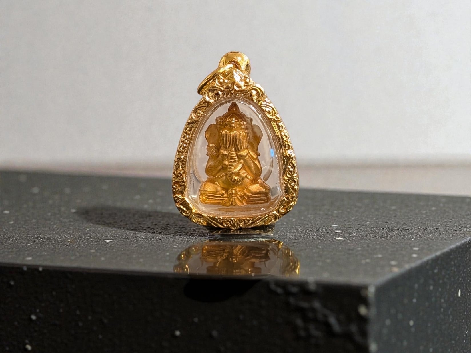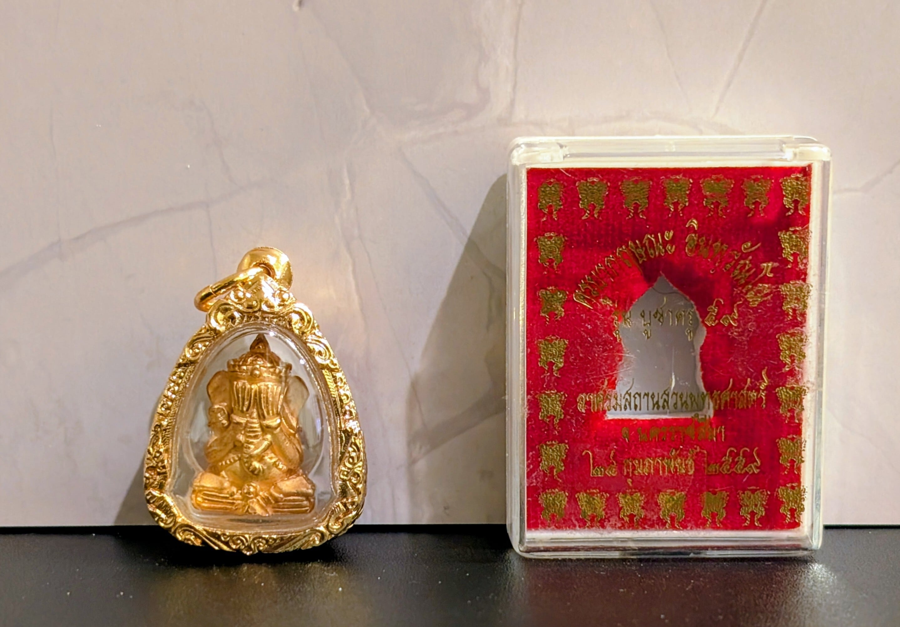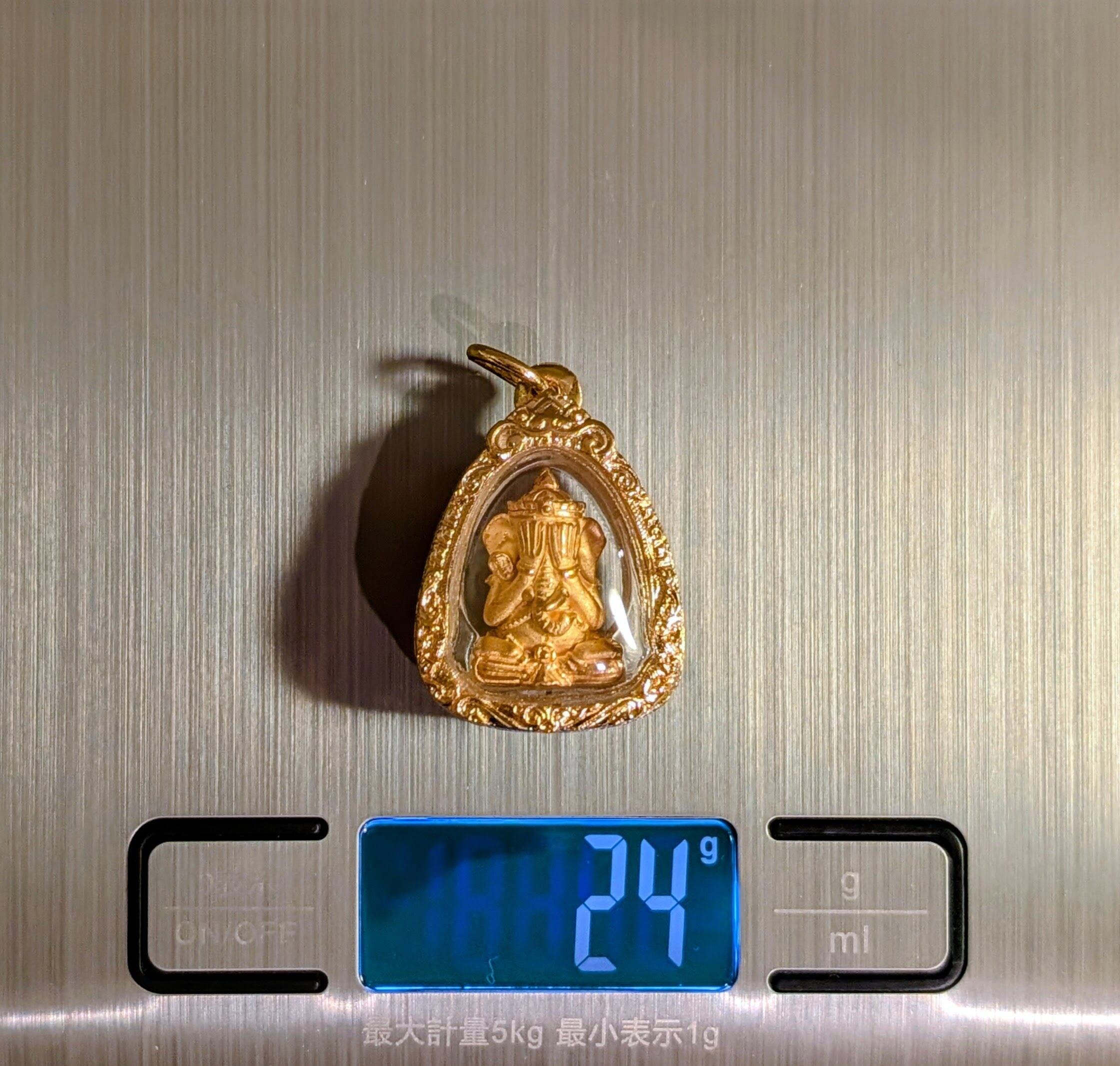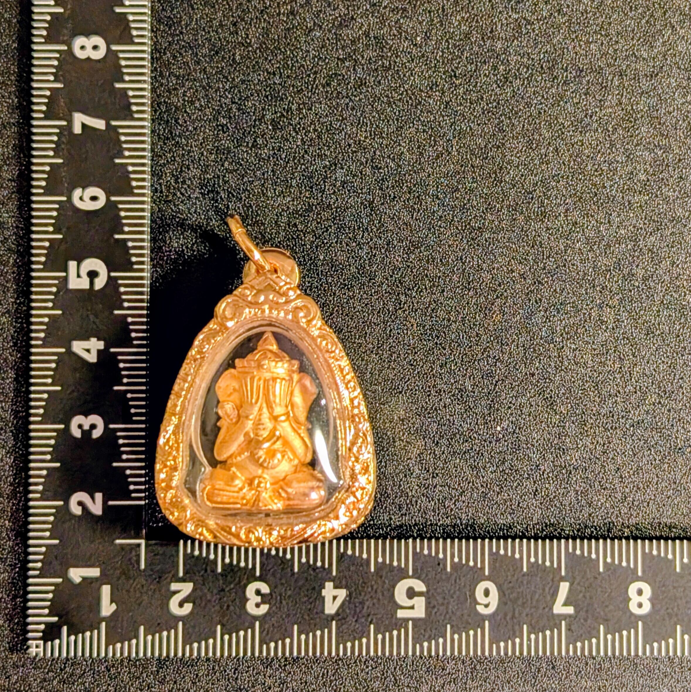 タイの現役高層クルバー・クリッサナのガネーシャをモチーフにした小像プラで「大と小」の2サイズのうち「大サイズ」となります。「水に浮かぶガネーシャ」モデルと呼ばれ、慈悲の心、商売繁盛、そしてあらゆる災難からの守護を願う、仏教の祝福が込められた至高のお守りとされています。トーンマイクローン枠入り。元箱あり。専門店より入手。