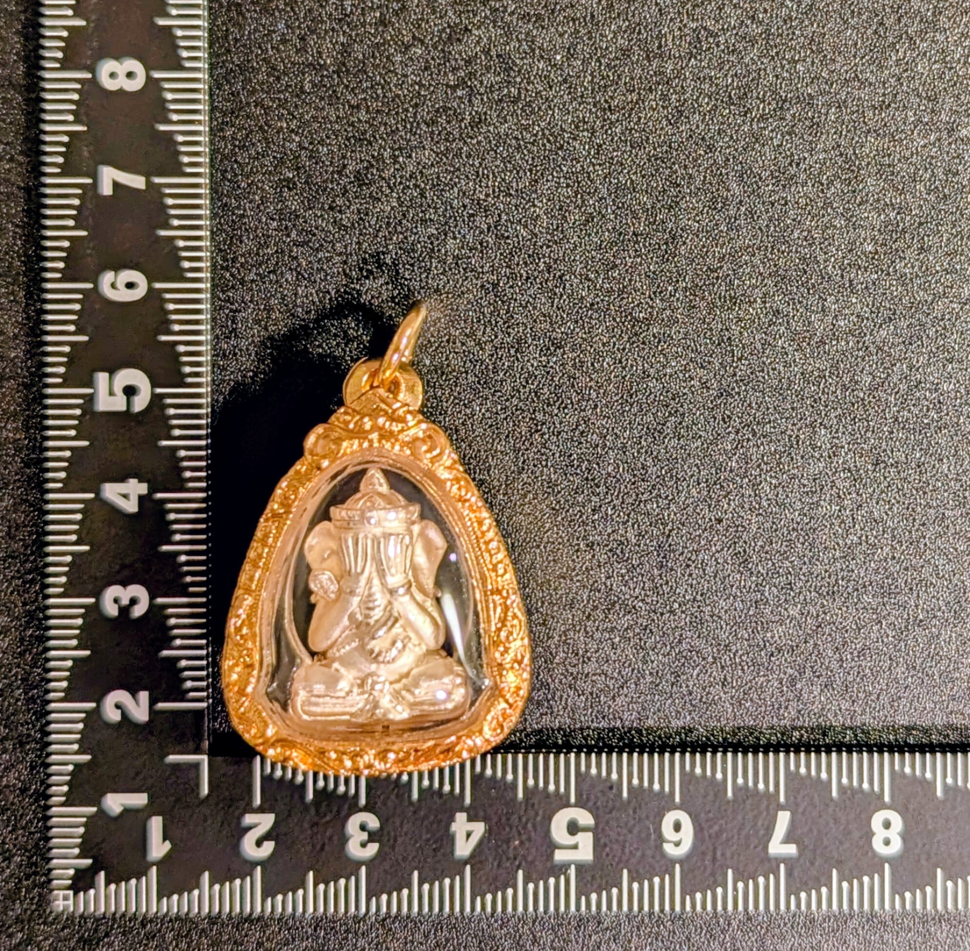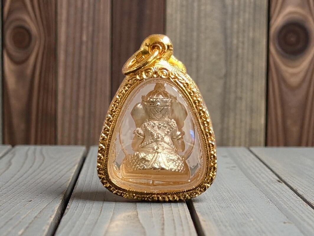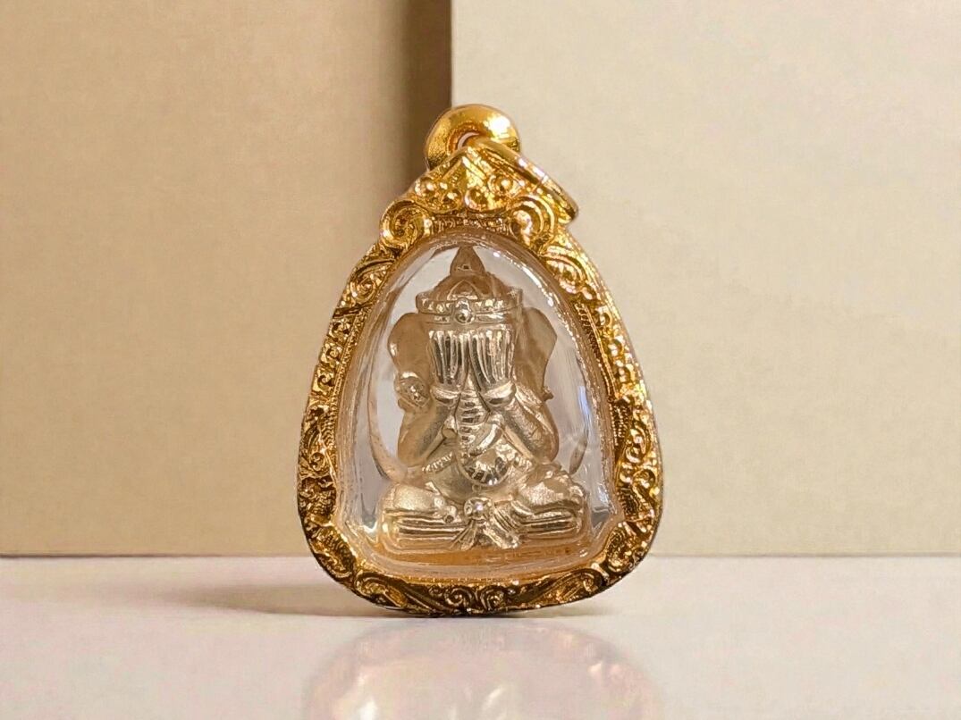 タイの現役高層クルバー・クリッサナのガネーシャをモチーフにした小像プラで「大と小」の2サイズのうち「大サイズ」となります。「水に浮かぶガネーシャ」モデルと呼ばれ、慈悲の心、商売繁盛、そしてあらゆる災難からの守護を願う、仏教の祝福が込められた至高のお守りとされています。トーンマイクローン枠入り。元箱あり。専門店より入手。