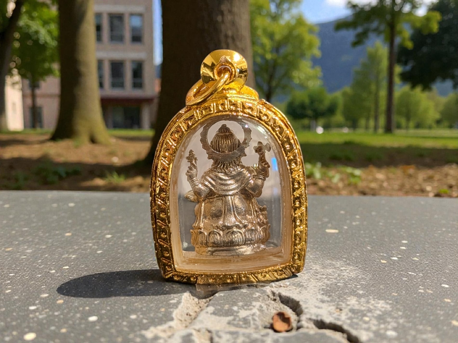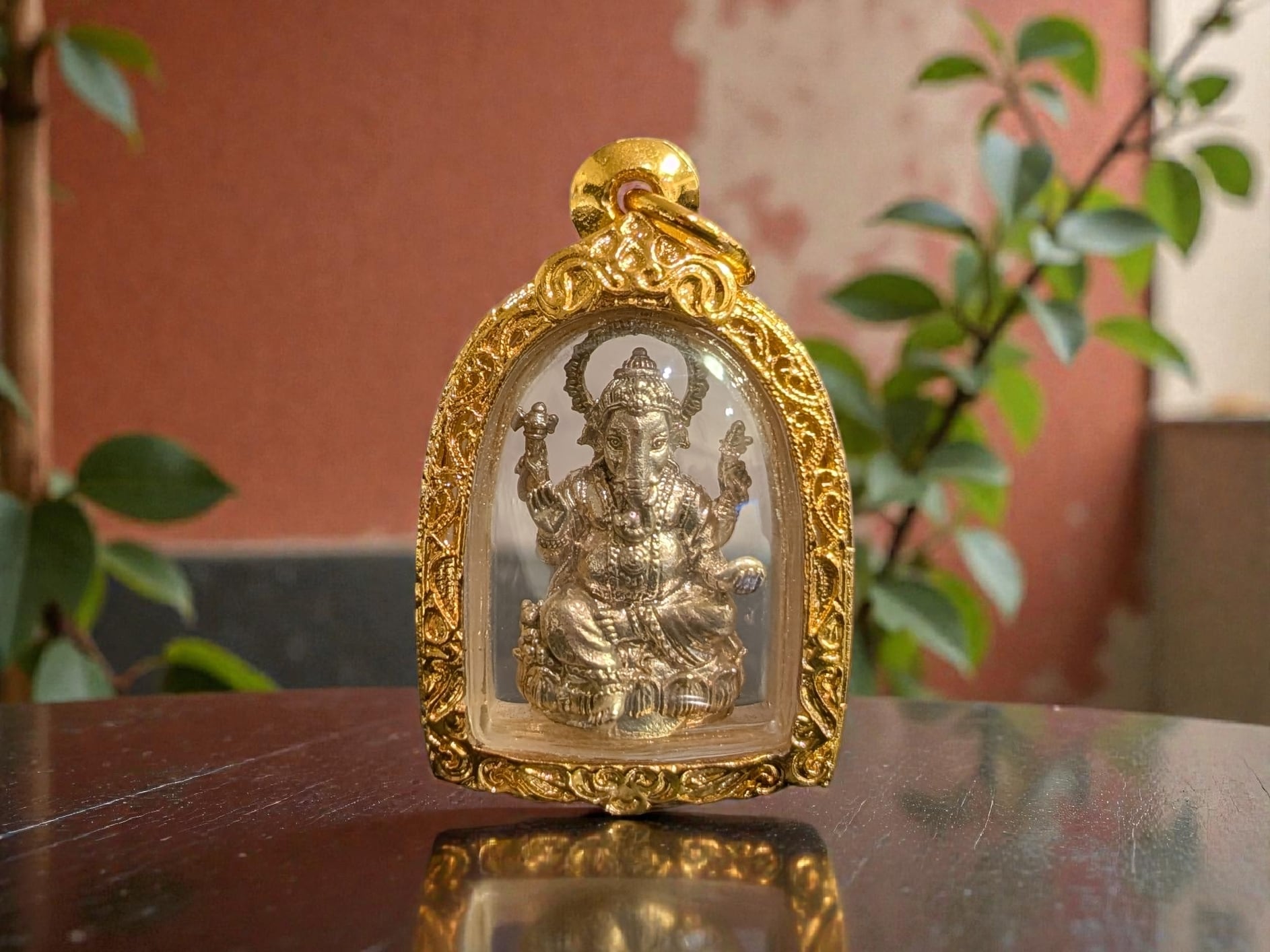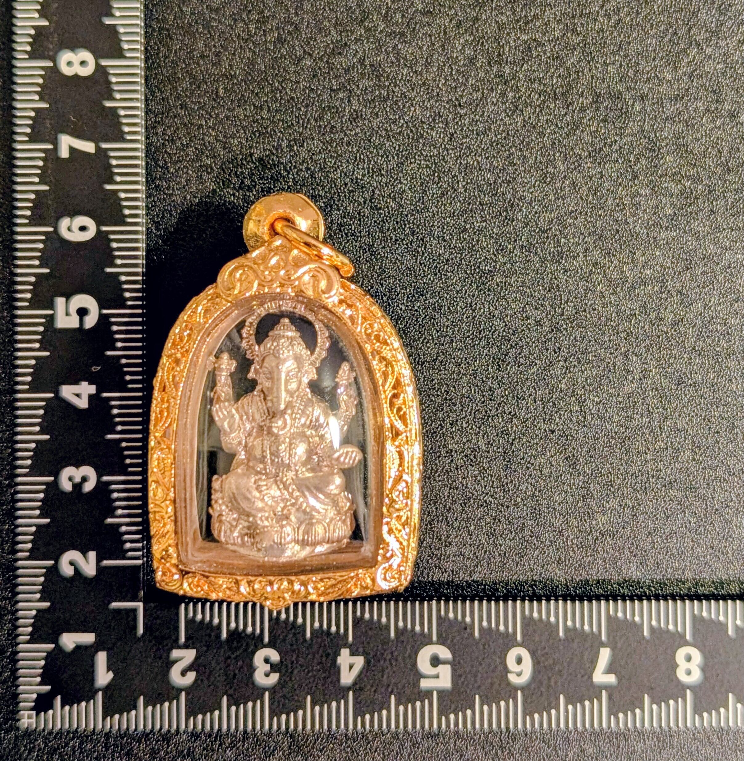 仏歴2556年にバンコクのワット・ゲーウチュームファーで発行された「水に浮かぶガネーシャ」スタイルで、「縁起の良い」モデルの小像です。トーンマイクローン枠入り。お寺より入手。
