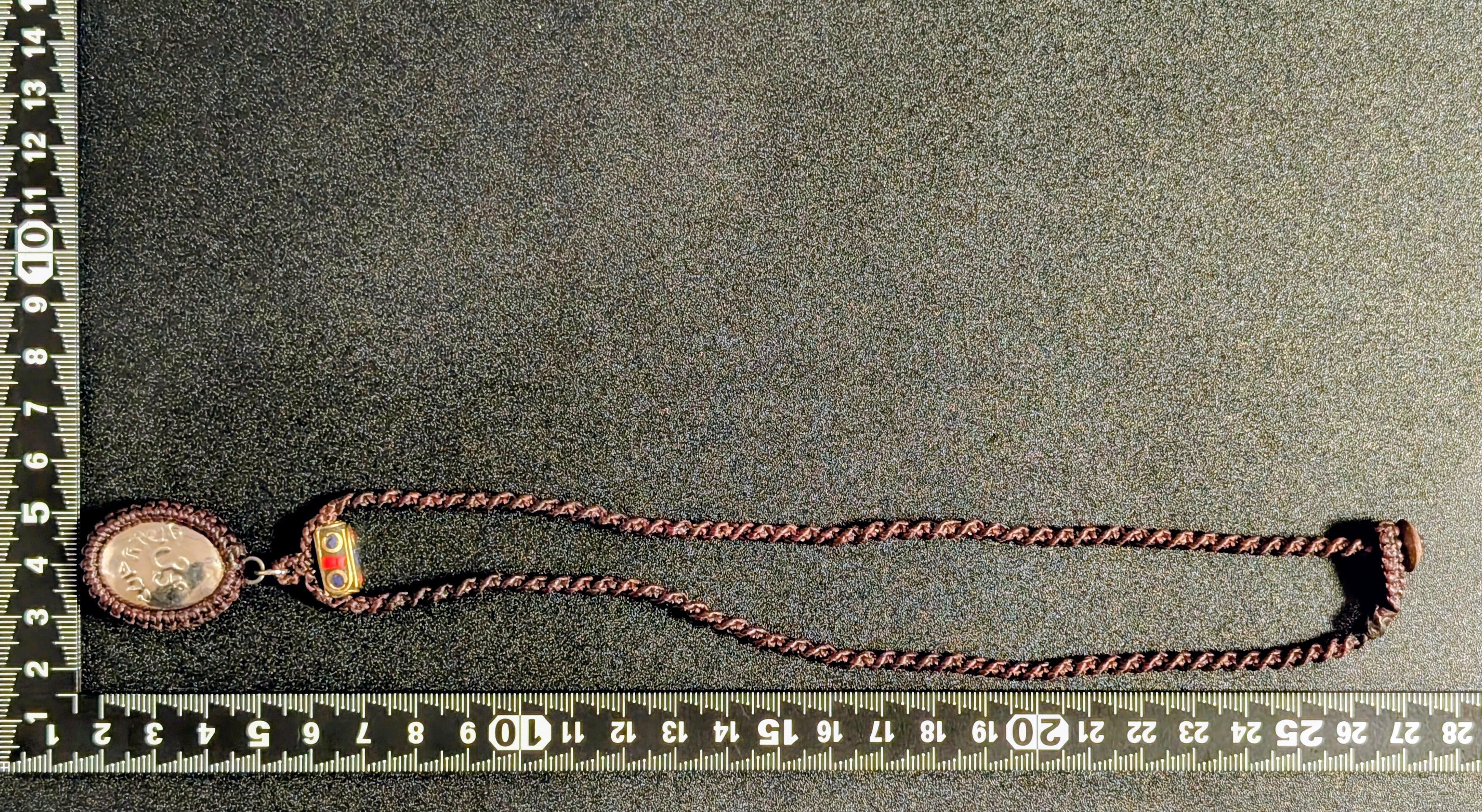 チャチュンサオ県内で『ピンクのガネーシャ』の巨像で有名なワット・サマーンラッタナーラームと並ぶガネーシャの聖地『クローンクアン公園』で販売のガネーシャのロケットが付いた手編みのネックレスとなります。祈祷済みのものかどうかの判断ができなかったので、「未祈祷品」として出品いたします。同公園の象徴である巨大ガネーシャ像をデザインしたロケットを付けた手編みのネックレスです。このロケットはグリーンですが、色のバリエーションは7色あります。同公園より入手。
