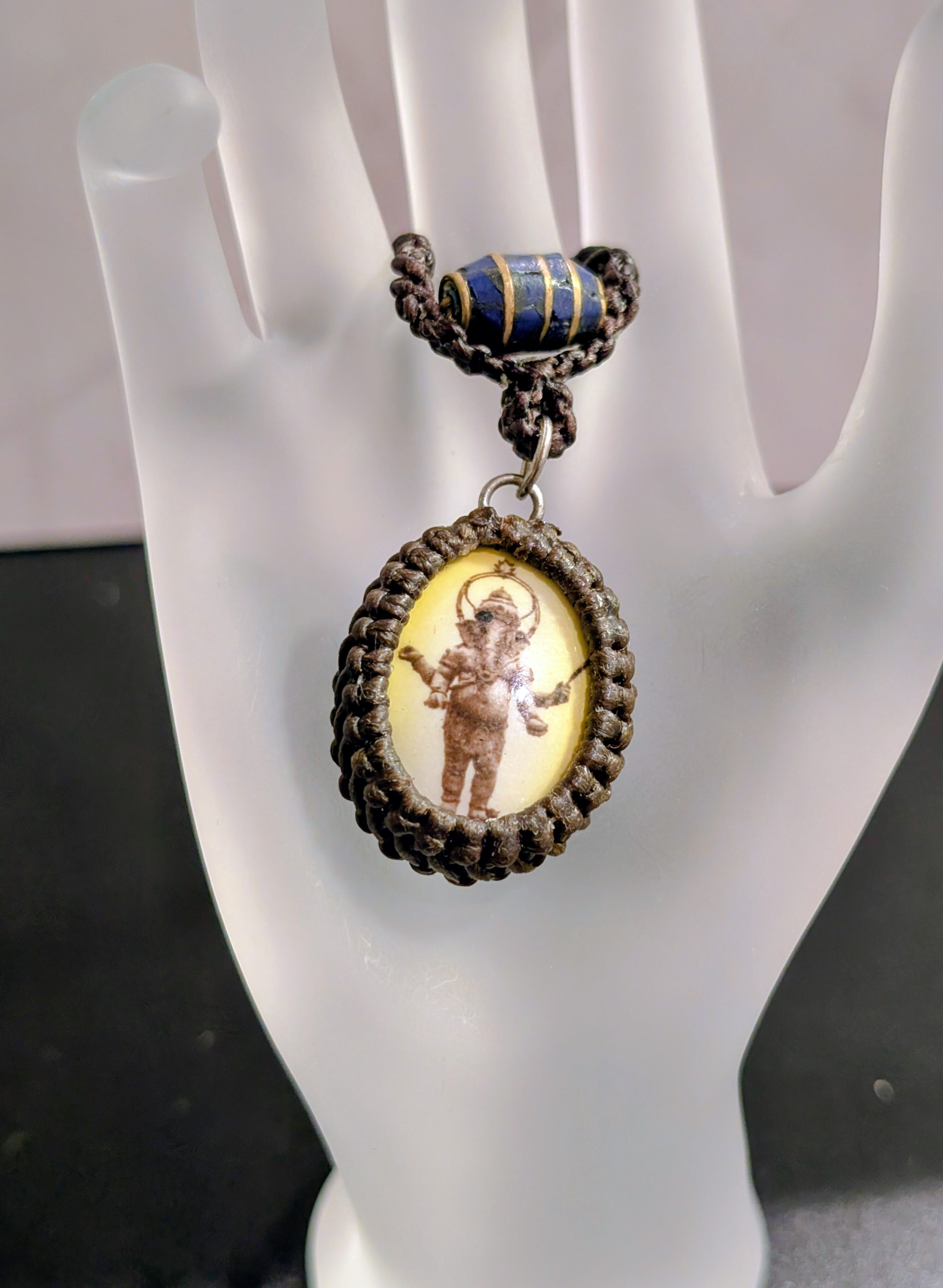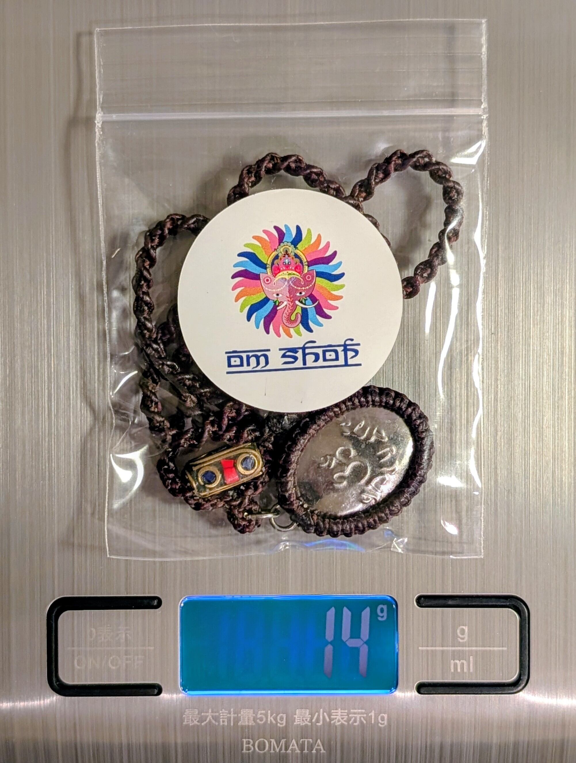 チャチュンサオ県内で『ピンクのガネーシャ』の巨像で有名なワット・サマーンラッタナーラームと並ぶガネーシャの聖地『クローンクアン公園』で販売のガネーシャのロケットが付いた手編みのネックレスとなります。祈祷済みのものかどうかの判断ができなかったので、「未祈祷品」として出品いたします。同公園の象徴である巨大ガネーシャ像をデザインしたロケットを付けた手編みのネックレスです。このロケットはイエローですが、色のバリエーションは7色あります。同公園より入手。