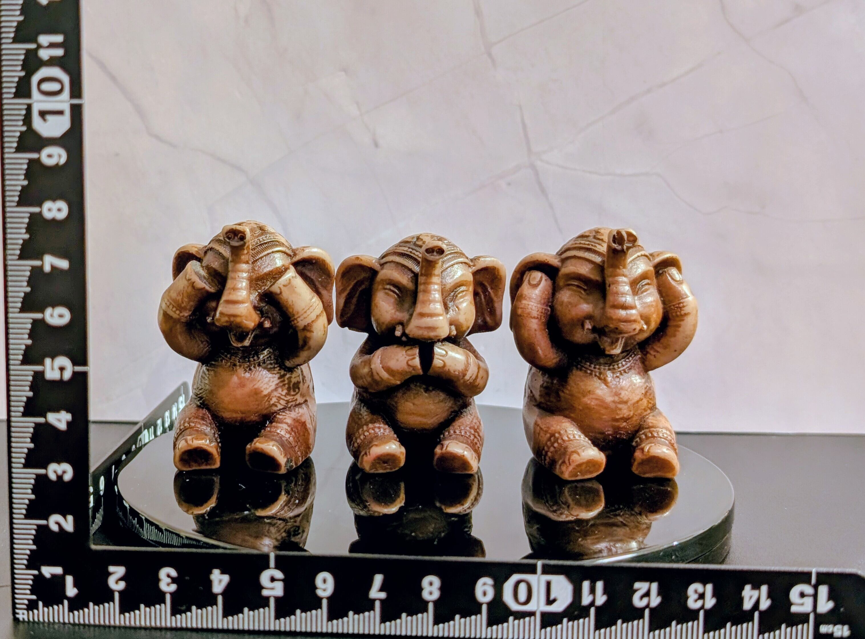 「見ざる言わざる聞かざる」のチャーン(象)置物3体セット(レジン製)